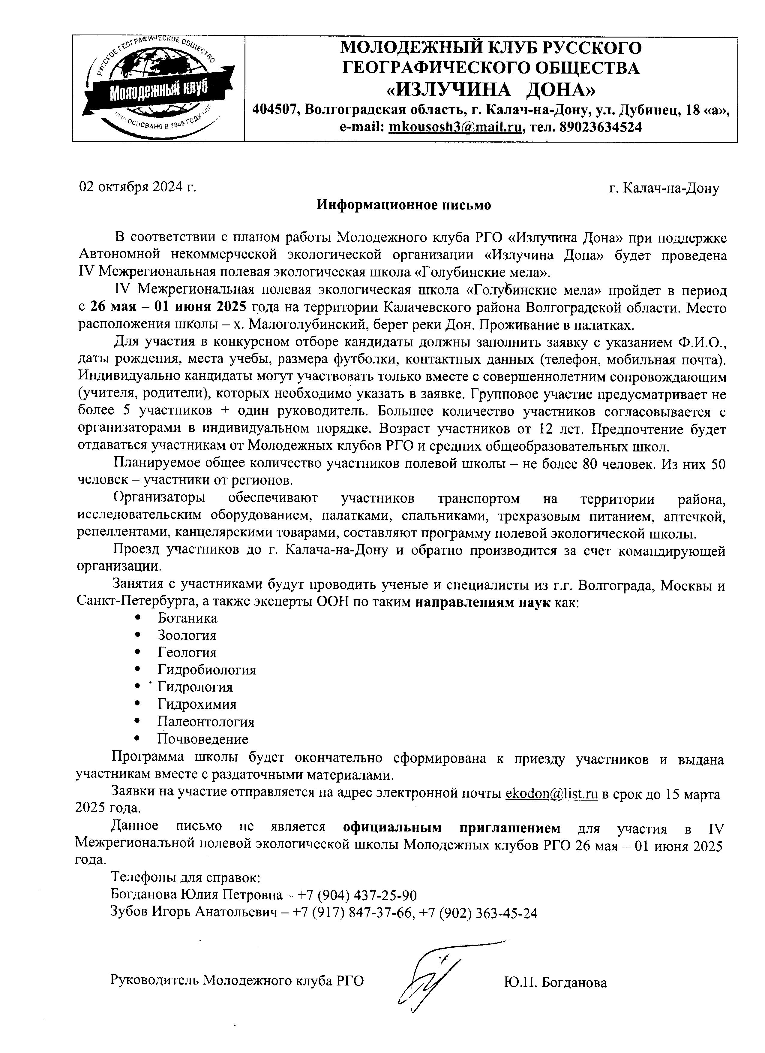 Молодежный клуб Русского Географического общества "Излучина Дона", при поддержке Автономной некоммерческой организации "Излучина Дона"