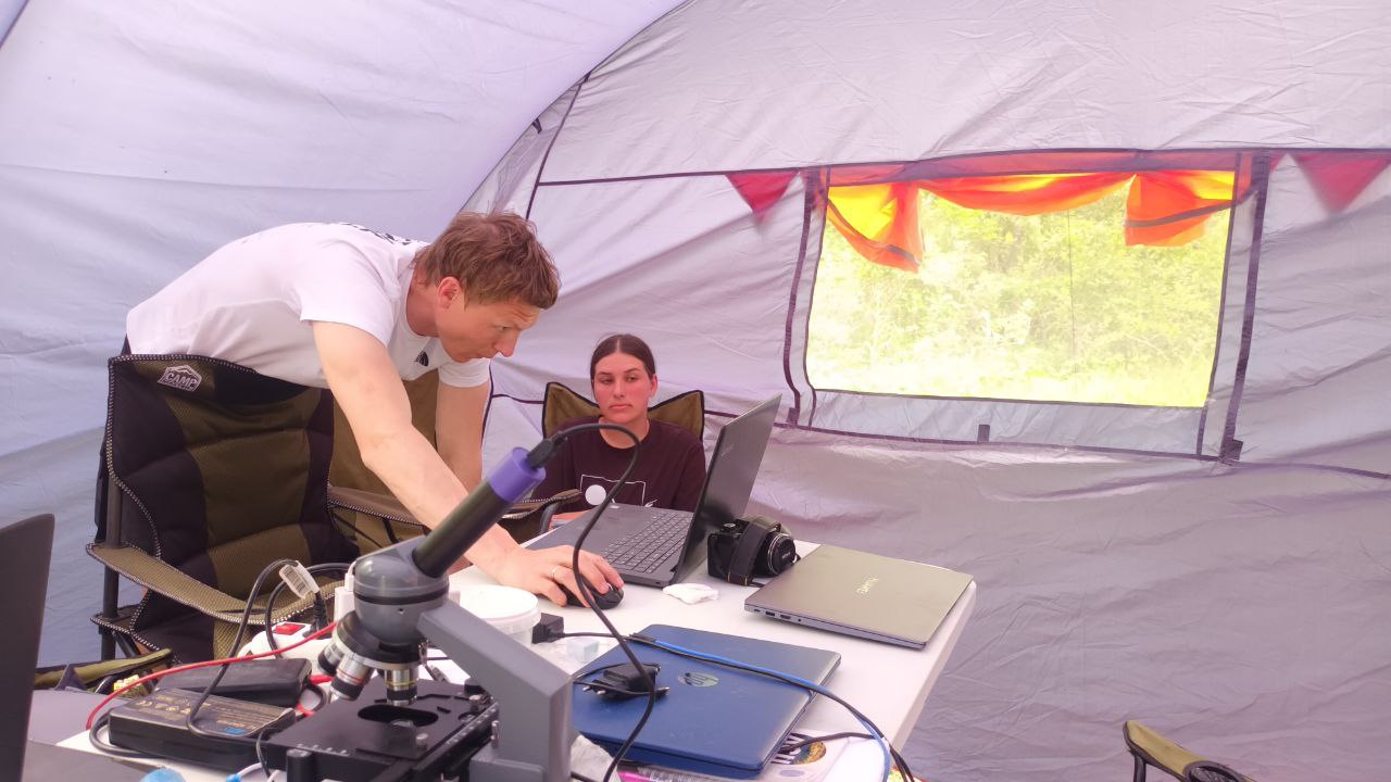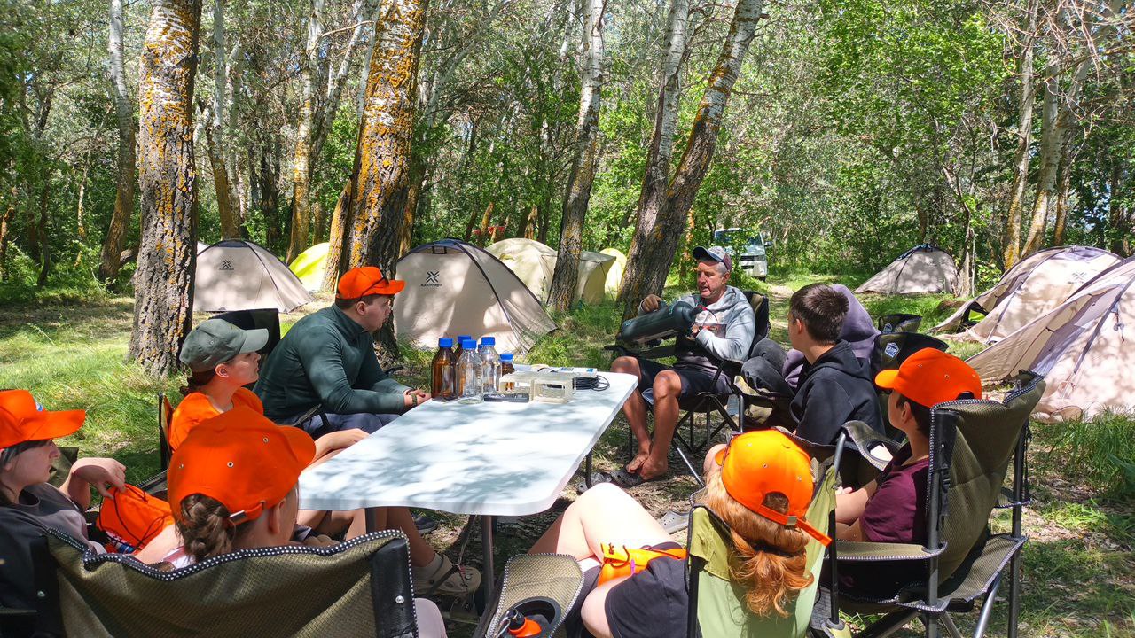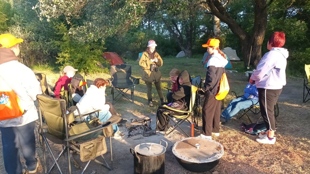 Утро в полевом лагере начинается рано, подъем, зарядка, заправка и сушка палаток, гигиенические процедуры завтрак и развод на занятия.